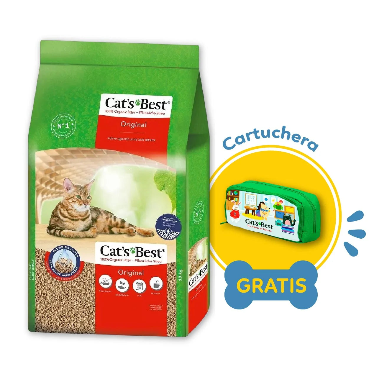 Cat’s Best Original utiliza el poder de las fibras de madera activa tecnológicamente refinadas como arena vegetal aglomerante. Se fabrica utilizando el nuevo proceso ICS Wood Fiber Technology **. Los líquidos y los olores se absorben de forma muy eficaz y se retienen en el interior, hasta 7 veces su propio peso. Por lo tanto, Cat’s Best Original puede permanecer en el arenero hasta 5 semanas antes de que sea necesario un cambio completo del mismo.