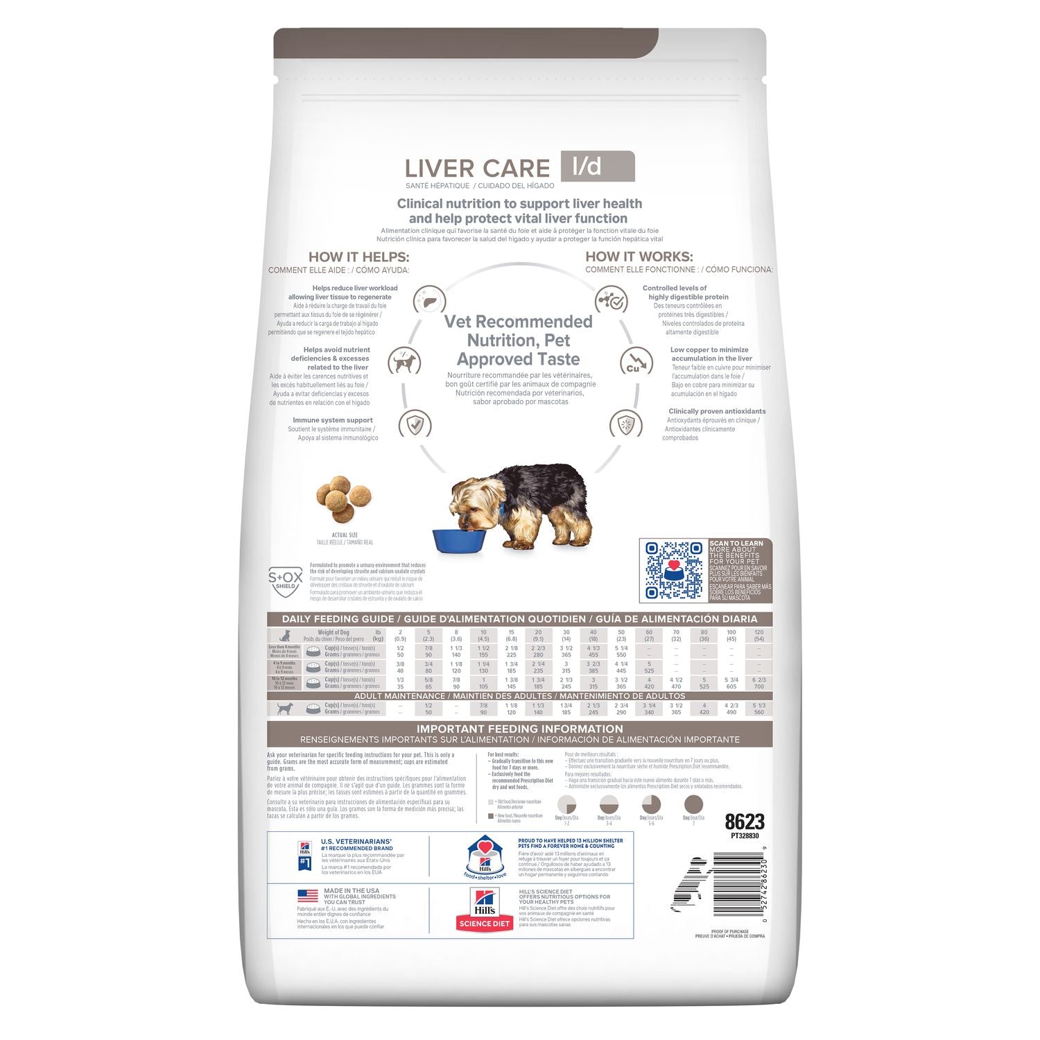 El hígado es el órgano interno más grande de tu perro con muchas funciones, incluyendo la metabolización y conversión de nutrientes, la eliminación de sustancias tóxicas de la sangre y el almacenamiento de vitaminas y minerales. El hígado tiene una asombrosa capacidad para repararse y regenerarse a sí mismo, y la nutrición juega un papel vital en este proceso. Hill's Prescription Diet l/d apoya la salud del hígado de tu perro.