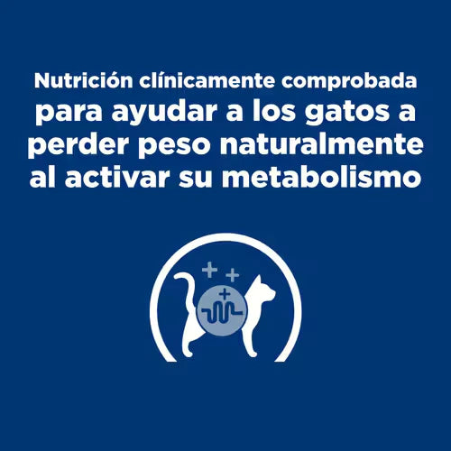 Nutrición clínicamente probada para ayudar a los gatos a perder peso de forma natural al activar su metabolismo.